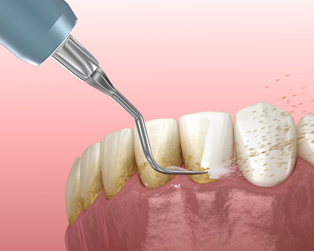 Le détartrage consiste à éliminer les dépôts de plaque dentaire et de tartre par décapage aux ultrasons pour éliminer la plus grosse partie du tartre, puis par des instruments manuels pour éliminer les résidus les plus résistants.